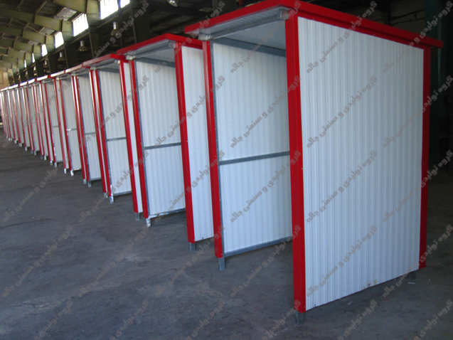 سقف و بدنه: از ورق گالوانیزه فرم دار رنگ کوره ای بصورت شادولاین و سینوسی با پرچ های فولادی و با سقف گالوانیزه فرم دار با آب بندی کامل