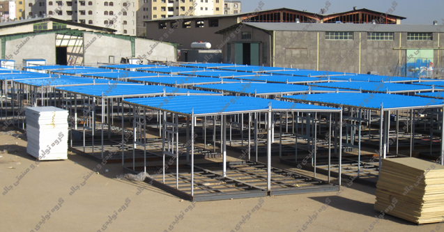 شاسی کف: با توجه به اندازه کانکس از تیرآهن 14، 16، و 18 با تیرریزی از پروفیل 40*40 و 80*40